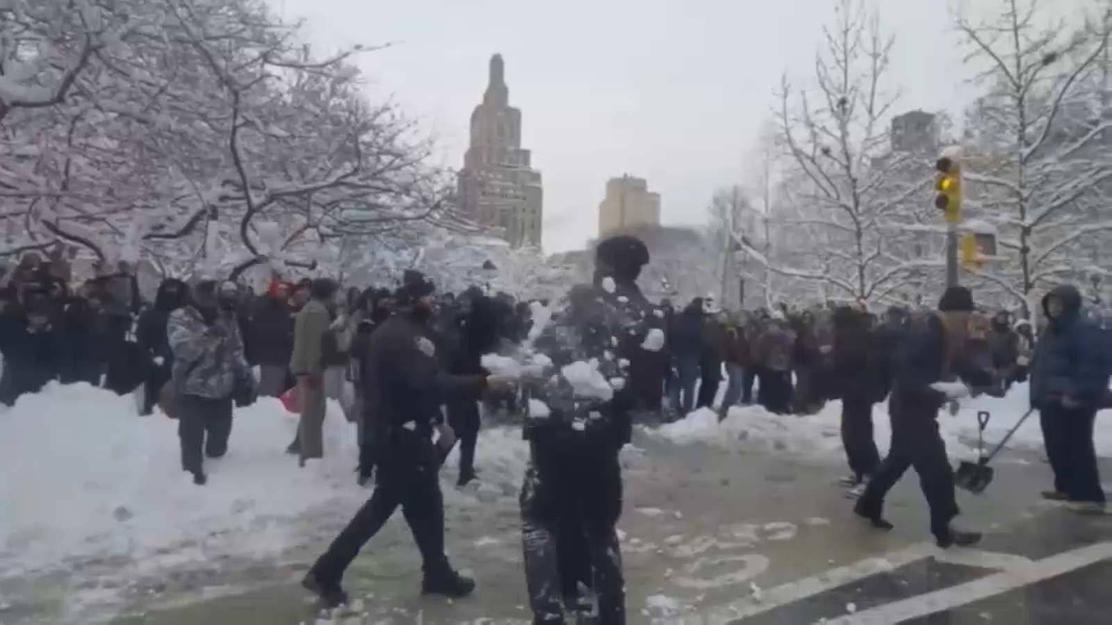 One witness told Eyewitness News that it started off as harmless fun but escalated when several young people began tossing snow from the roof of the park’s restrooms. The officers were confronted after they arrived to investigate.