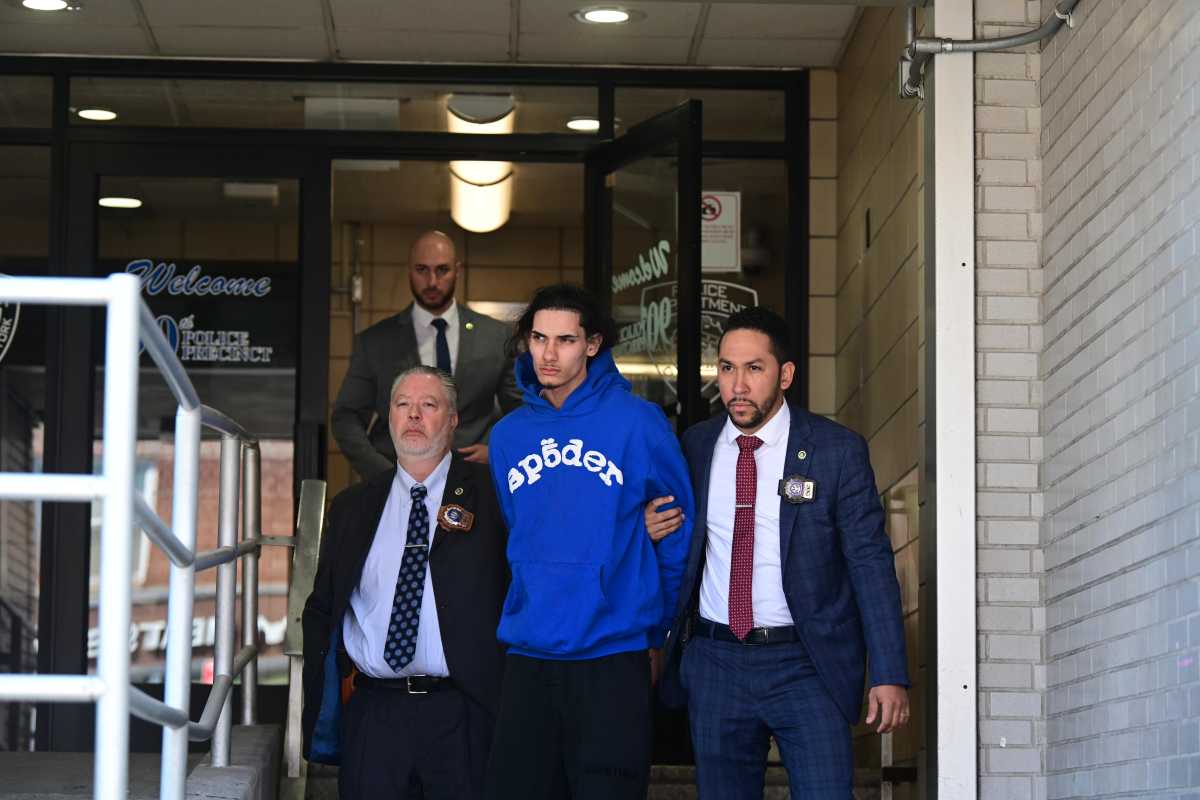 Garcia was questioned throughout Tuesday at the 90th Precinct before being led out of the stationhouse in cuffs by detectives that afternoon. He did not answer for the alleged crime and remained silent as he was placed into the back of a police vehicle.